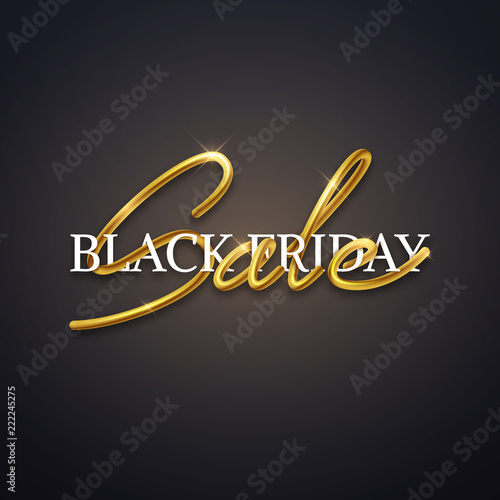 Black friday sale advertisement, interlaced calligraphic text design, realistic blend, vector illustration banner