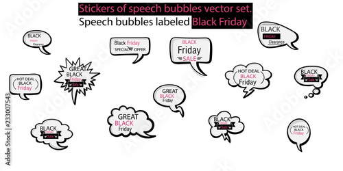 Black Friday Stickers of speech bubbles vector set. speech bubbles labeled Black Friday