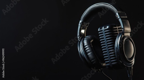 Black Headphones and a Vintage Microphone
