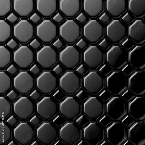 Black hexagonal pattern on a sleek background.
