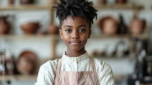 Black history month, Confident Young Girl Potter Craftsmanship Studio Portrait