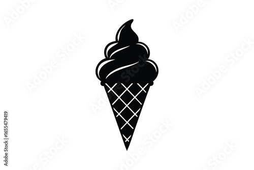 Black ice cream cone silhouette isolated on white background