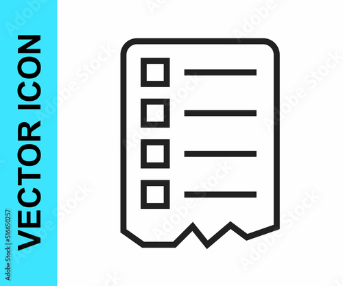 Black line Shopping list icon isolated on white background. Vector