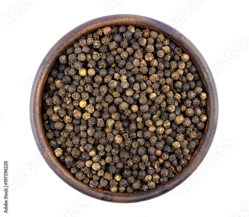Black pepper in bowl isolated on white background
