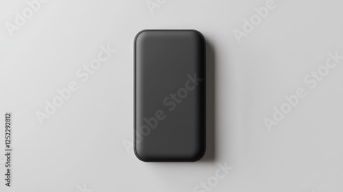 Black power bank on white background; product photography