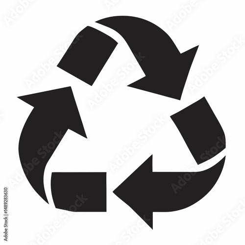 Black recycling symbol with three circular arrows on a white background. Vector illustration