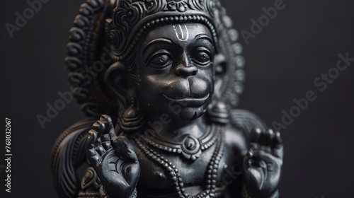 black sculpture of indian god hanuman
