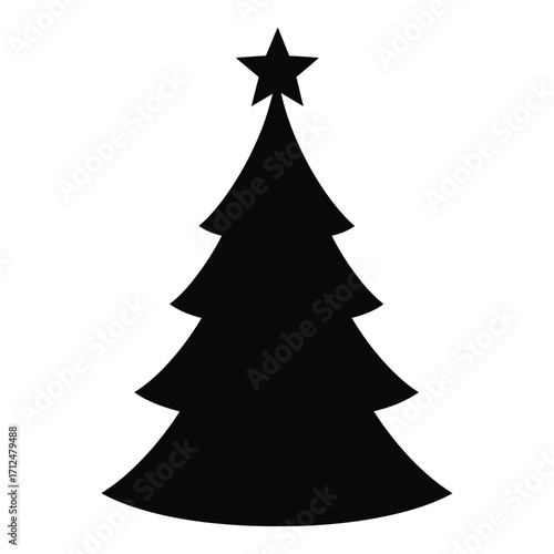 Black silhouette christmas tree with star festive holiday decoration silhouette art silhouette