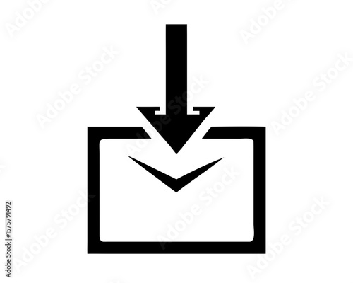 Black silhouette design featuring a downward pointing arrow inside a box concept