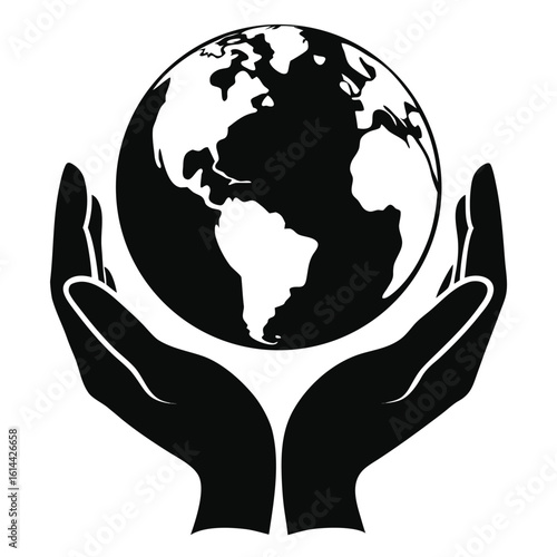 Black Silhouette Illustration Two Hands Holding a Globe Representing Earth and Global Unity
