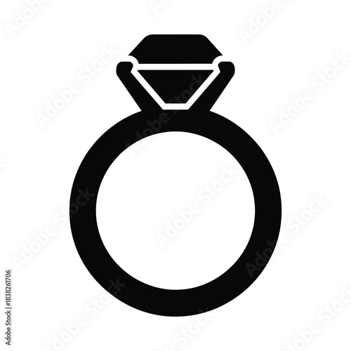 Black silhouette of a diamond ring icon on white background ring, jewelry, diamond