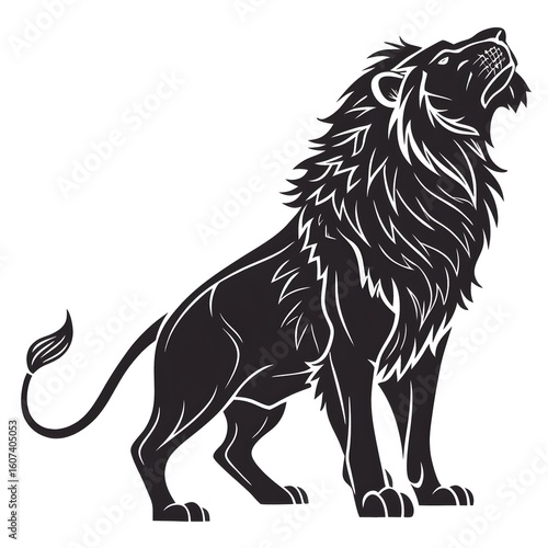 Black silhouette of a lion on white background