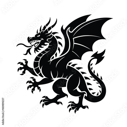 Black silhouette of a mythical dragon with wings and claws