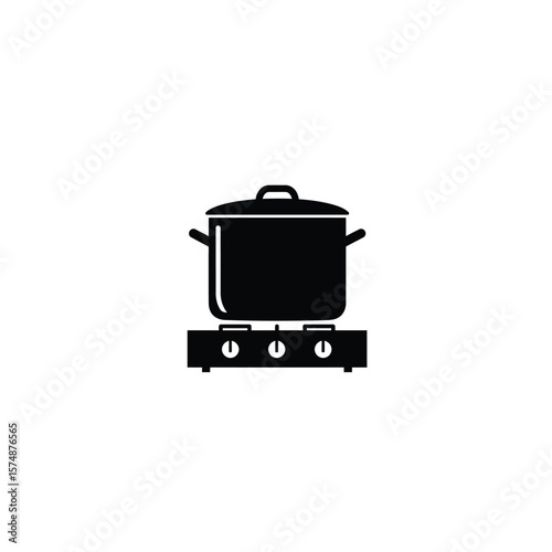 Black silhouette of a pot on a stove with knobs cooking