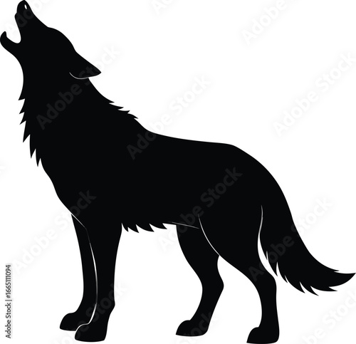 Black silhouette of a wolf howling at the moon
