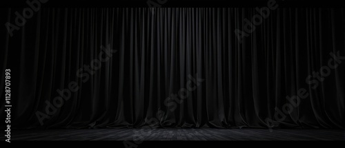 Black silk curtains creating a mysterious aura in a dimly lit room, mysterious, enigma, aura