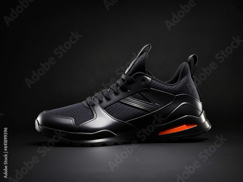 Black sports shoe on black background
