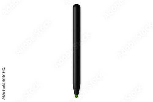 Black stylus pen with green tip pointing down on transparent background