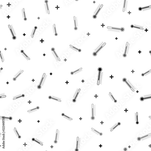 Black Thermometer icon isolated seamless pattern on white background. Vector Illustration