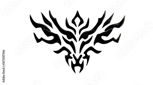 Black Tribal Design Featuring Stylized Dragon Shape for Art Use