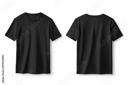 Black T-shirt front and back view for mockup or branding purposes. AI generated image