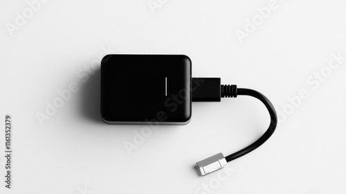 Black USB-C Power Adapter with Cable on White Background