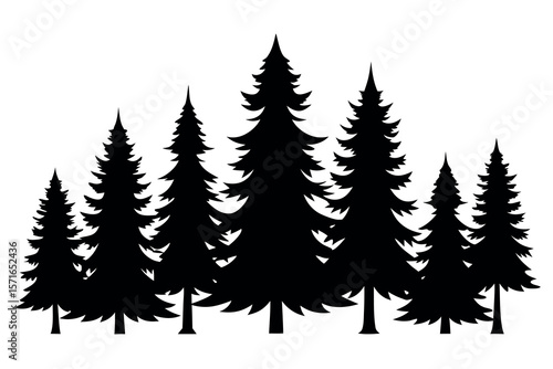 Black Vector Silhouette Set of Evergreen Pine Trees in Forest Landscape – Seasonal Nature Illustration