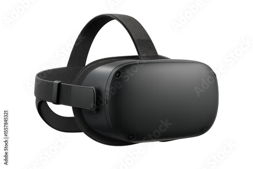 Black virtual reality goggles on transparent background, representing gaming, metaverse, and immersive experiences