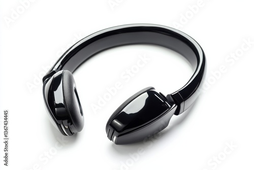 Black wireless headphones on a sleek white surface, highlighting minimalist design isolated on transparent background