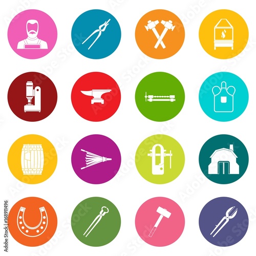 Blacksmith icons many colors set