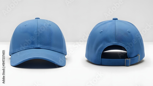Blank blue baseball cap mockup from front and back view isolated on white background