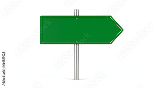Blank Green Directional Arrow Sign on a Metal Pole Isolated on a White Background