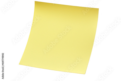 Blank yellow sticky note is displayed, perfect for jotting down reminders or messages. Its vibrant color adds cheerful touch to any workspace, making it essential organizational tool