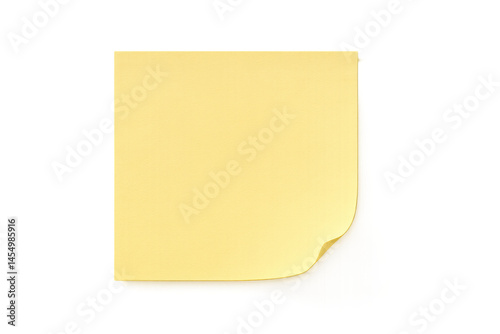 Blank Yellow Sticky Note on White Background for Writing Messages