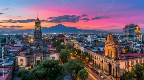 Blending History and Modernity in a Captivating Aerial Cityscape at Twilight