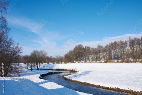 Blick über den Stausee in Sohland an der Spree im Winter