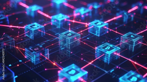 Blockchain Technology: Abstract illustration of blockchain and cryptocurrency transactions across a network