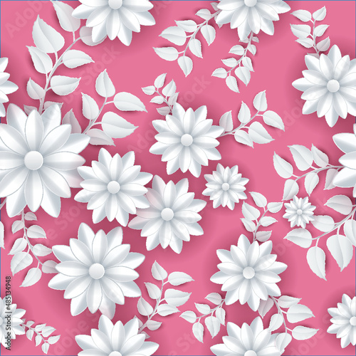 Blooming spring flowers and leaves paper craft