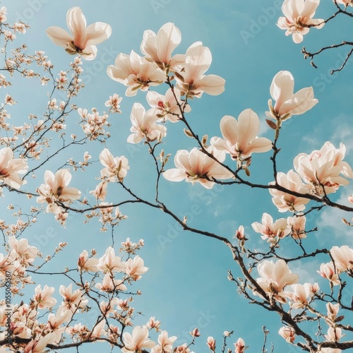Blossoms dance on blue expanse