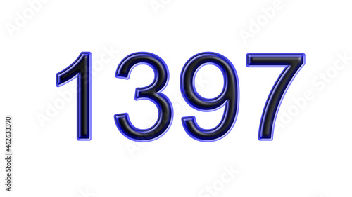 blue 1397 number 3d effect white background