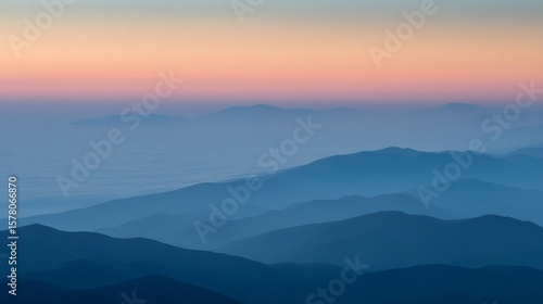 Blue and Pink Sunset Over Misty Mountain Ranges