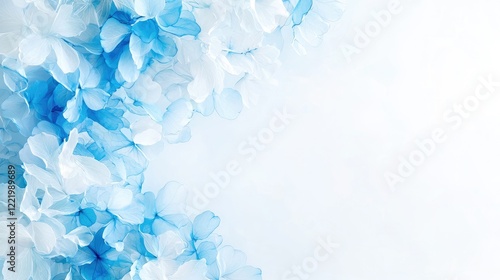 Blue and white paper flowers border, blank space, background, wedding invitation design