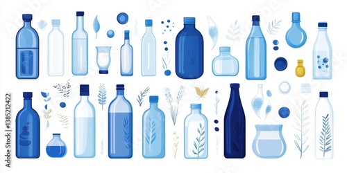 Blue Bottles & Containers, Nature-Inspired, Flat Design