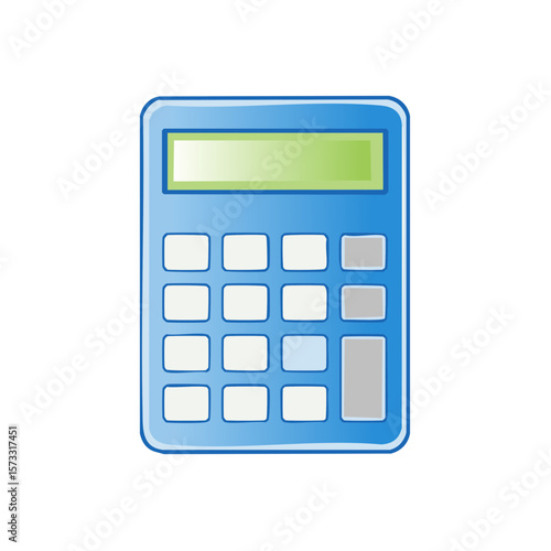 Blue calculator with green display and white buttons, illustration of business tool.