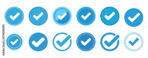 Blue CheckMark vector icon. Set of simple check mark Social Media Verified Badge and Approval Tick symbol. Accept okay Collection