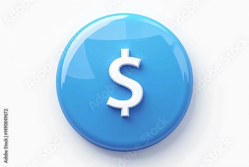 Blue Circular Button with White Dollar Symbol, Representing Finance and Economic Transactions