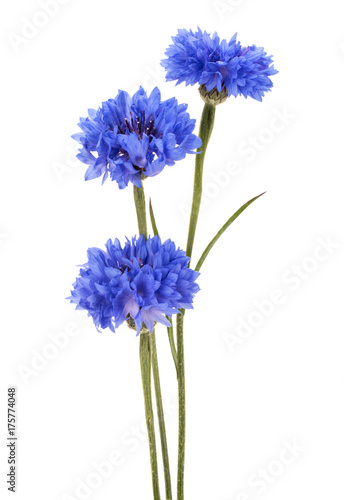 Blue Cornflower Herb or bachelor button flower bouquet isolated on white background cutout