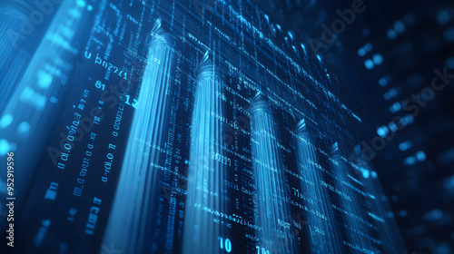 Blue Digital Bank Icon 3D Glowing Effect on Blue Background