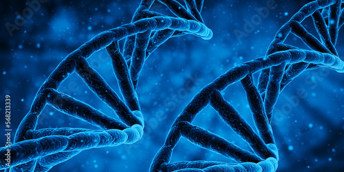 Blue DNA structure science research biology and medical concept. 3d illustration