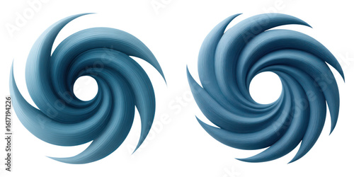 Blue energy vortex swirl with dynamic curved blades spinning in motion, creating powerful transformation force effect